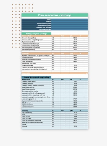 Arkusz kalkulacyjny z kosztorysem remontowym,